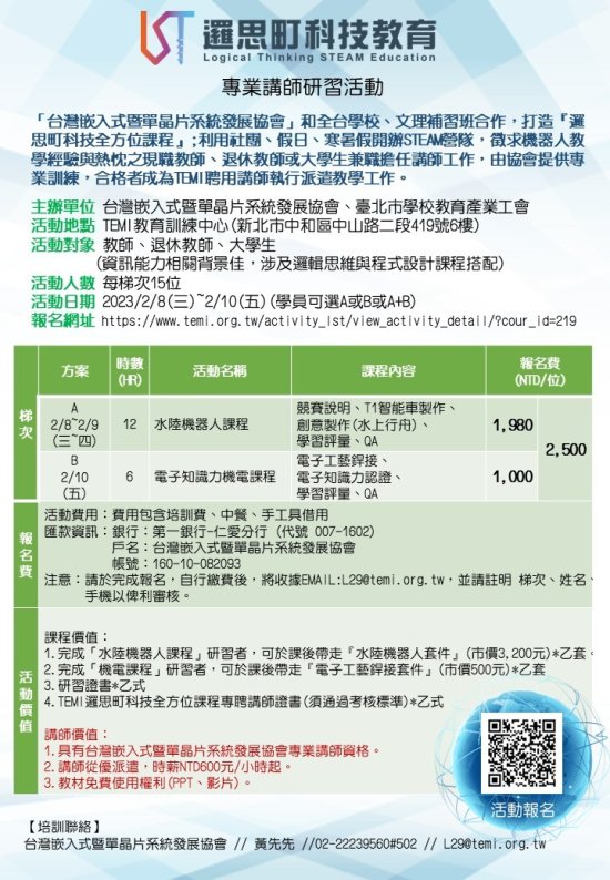 台灣嵌入式暨單晶片系統發展協會與本會主辦【邏思町科技教育】專業講師研習活動