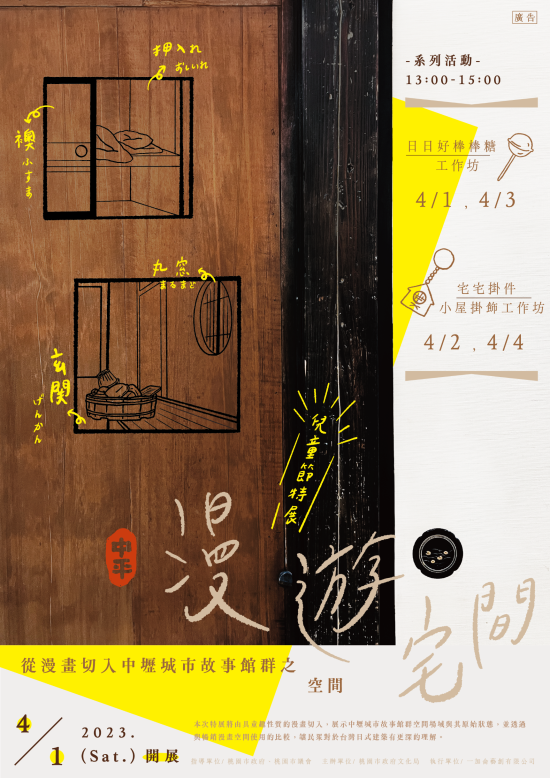一、為推廣中壢城市故事館群建築空間特色,訂於112年4月1日起辦理旨揭展覽及相關活動,內容將以童趣手法及漫畫形式,呈現日式建築空間場域,讓民眾對中壢城市故事館群更深刻的認識。