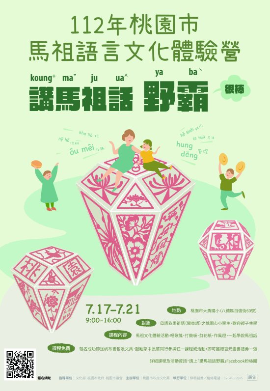 轉知文化局辦理「112年桃園市馬祖語言文化體驗營」宣傳海報