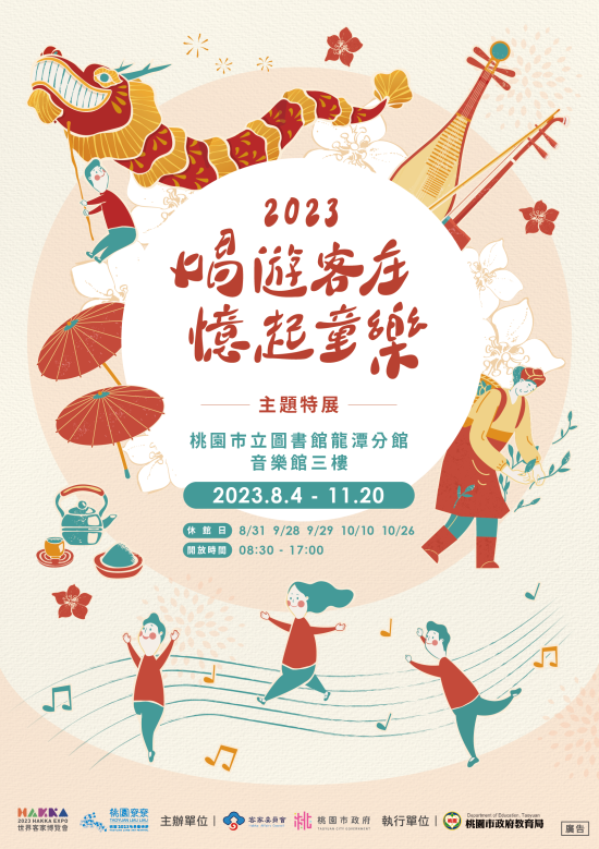 主旨:檢送桃園市立圖書館辦理112年度第三檔特展「唱遊客庄.憶起童樂」互動特展文宣及海報,勞請貴校協助宣傳並鼓勵師生參與,請查照。