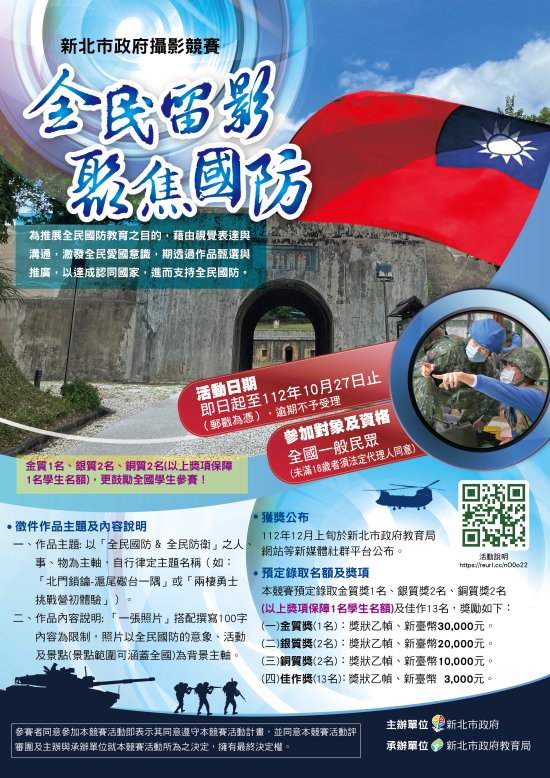 主旨:有關新北市政府《全民留影‧聚焦國防》攝影競賽活動,請協助宣導鼓勵參與,請查照。