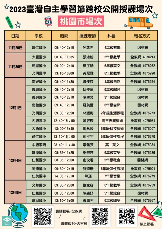 | 1、 | 實體公開觀議課:採線上報名,報名方式請參閱附件,請於112年11月13日前完成報名,名額有限。 |