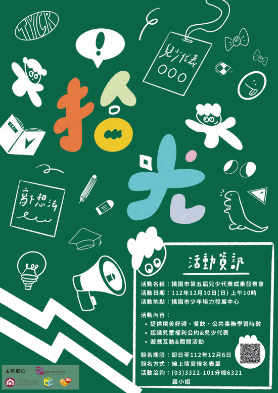 主旨:有關桃園市政府社會局辦理「拾光-桃園市第五屆兒少代表成果發表會」活動,敬請各校協助轉知兒少踴躍參與,請查照。