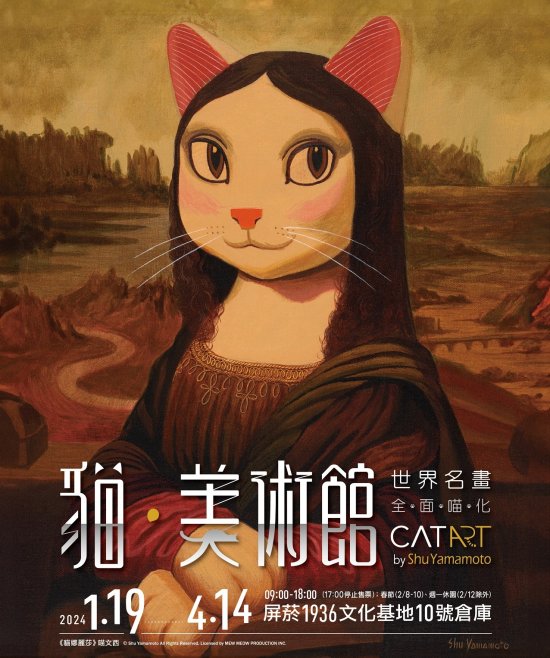 主旨:聯合數位文創股份有限公司訂於113年1月19日~113年4月14日於屏菸1936文化基地10號倉庫舉辦「貓•美術館 世界名畫•全面喵化 CAT ART by Shu Yamamoto」,敬請協助公告周知,鼓勵師生及家長踴躍參與,並規劃進行校外教學及其團體參觀之參考依據,請查照。