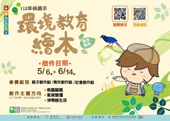 | 為鼓勵社會大眾以桃園在地環境議題為故事背景發想,透過環境教育繪本創作並徵選優良繪本作為未來教學之用,以提升桃園市民眾及學生在環境覺知與敏感度、環境概念知識、環境價值觀與態度、環境行動技能與環境行動經驗等環境教育五大教育目標之發展,達到共同維護環境永續之目的。 |