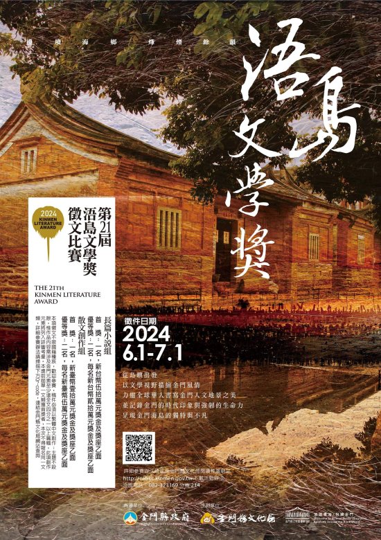 金門縣文化局「2024第21屆浯島文學獎」 徵文比賽訊息,自113年6月1日至7月1日截止