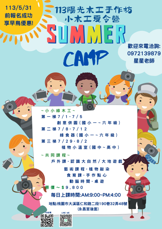 轉知 113陽光木工手作坊-小木工夏令營,詳見附件檔海報。
