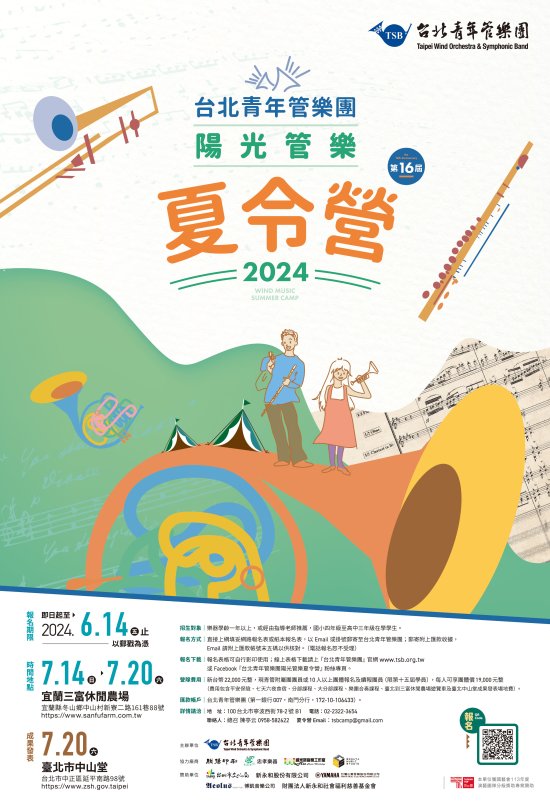 主旨:檢送「第16屆台北青年管樂團陽光管樂夏令營」招生簡章與海報各1份,敬請協助轉知所屬學校、校內師生並鼓勵踴躍報名參加,請查照。