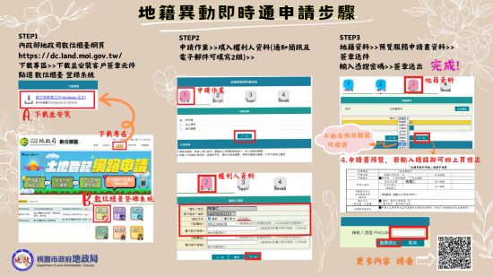 https://dc.moi.gov.tw)以自然人憑證申辦桃園市轄內不動產之地籍異動即時通服務,