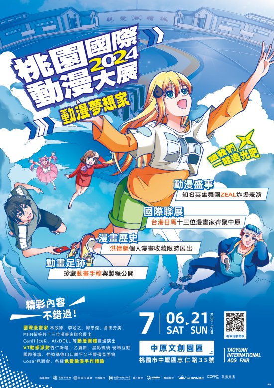 一、「2024桃園國際動漫大展」訂於本(113)年7月6日至21日假中原文創園區辦理,今年主題為「動漫夢想家--讓我們一起追光吧!」,期透過精彩作品帶大家看見超越國界、跨越文化追求夢想的精神,沉浸在動漫迷人的光彩中,對生活保有做夢、追夢的能量,找到屬於自己的亮光。