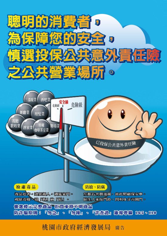 1、聰明的消費者,為保障您的安全,慎選投保公共意外責任險之公共營業場所。