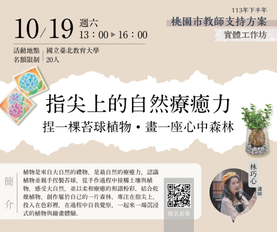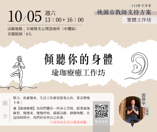 | 主旨: | 有關本市「113年度教師諮商輔導支持服務-實體工作坊及10-11月教師線上研習課程」 一案,詳如說明,請查照。 |