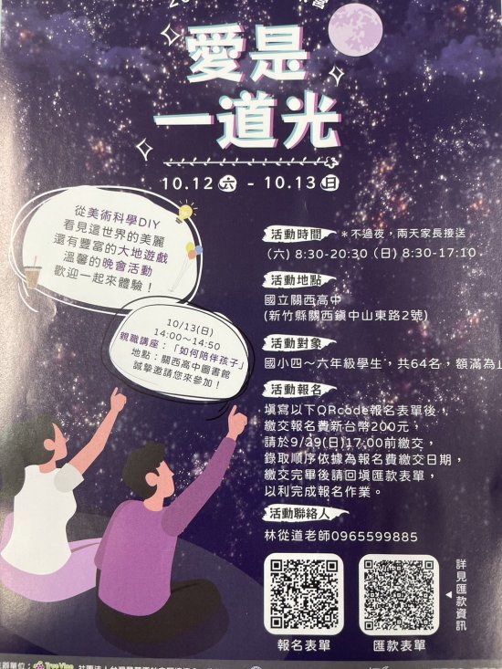 轉發2024兒童育樂營<愛是一道光>10月12日~10月13日