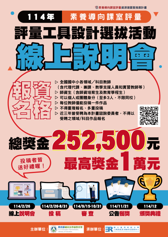 | (二) | 投稿期間自114年2月26日至8月31日止。實施辦法如附件1,另提供海報電子檔(如附件2)。 |