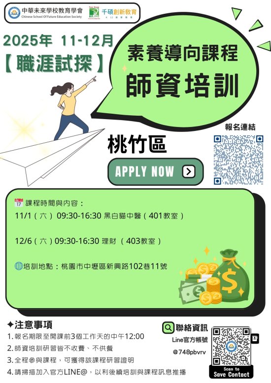 一、 | 為增進教師多元專業知能,拓展跨領域素養,本會規劃辦理「教師增能系列研習」,主題涵蓋職涯試探及科技素養,期能提升教師在課堂教學與生活應用上的廣度與深度。 |