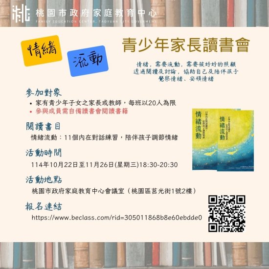 主旨:檢送家庭教育中心「小桃家10月課程資訊」、「青少年家長讀書會」、「新婚伴侶成長營」海報1份,請查照。